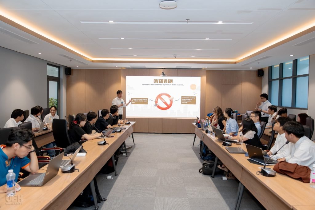 Các đội thi đã thể hiện kiến thức chuyên môn vững chắc, tư duy phản biện sắc bén và khả năng làm việc nhóm hiệu quả. Hội đồng giám khảo gồm cô Lea Obradović, cô Victoria Vuyeqaba, cô Kiki Wang, TS. Trần Thị Tuấn Anh và TS. Trần Minh Hoàng đã ghi nhận tinh thần học hỏi, nỗ lực phân tích và sự sáng tạo của sinh viên thông qua những phản hồi chuyên sâu sau mỗi phần trình bày.