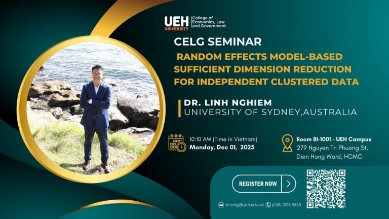 The College of Economics, Law and Government would like to respectfully invite lecturers/ researchers to come and share your experiences at the CELG seminar Topic:   Random effects model-based sufficient dimension reduction for independent clustered data Presenter: Dr. Linh Nghiem, University of Sydney Time: 10:00 AM (Vietnam), Monday, Dec…