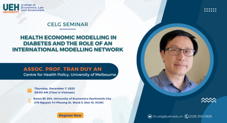 Dear Lecturers, Researchers and Students, The College of Economics, Law and Government would like to respectfully invite lecturers/ researchers to come and share your experiences at the 2nd CELG seminar: Topic: Health economic modelling in diabetes and the role of an international modelling network Presenter: Associate Professor An…