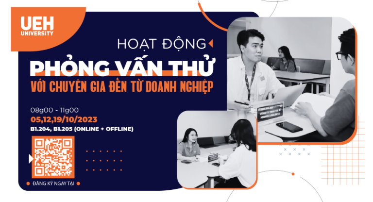 Thời gian: 05/10, 12/10 và 19/10/2023 Địa điểm: Trực tiếp tại B1.204, B1.205 và trực tuyến trên nền tảng event.ueh.edu.vn và vieclam.ueh.edu.vn Đăng ký tại: http://go.ueh.edu.vn/phongvanthu2023 Nhằm tạo cơ hội để người học được tham gia phỏng vấn với chuyên gia đến từ doanh nghiệp và tạo điều…