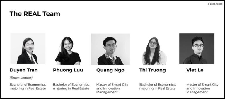 Đội The REAL gồm 3 sinh viên Trần Ngọc Duyên, Lưu Thị Thu Phương, Trương Võ Anh Thi – chương trình Cử nhân Bất động sản, Khoa Kinh tế (UEH) và 2 người học Ngô Ngọc Quang, Lê Quốc Việt – chương trình Thạc sỹ Quản lý…